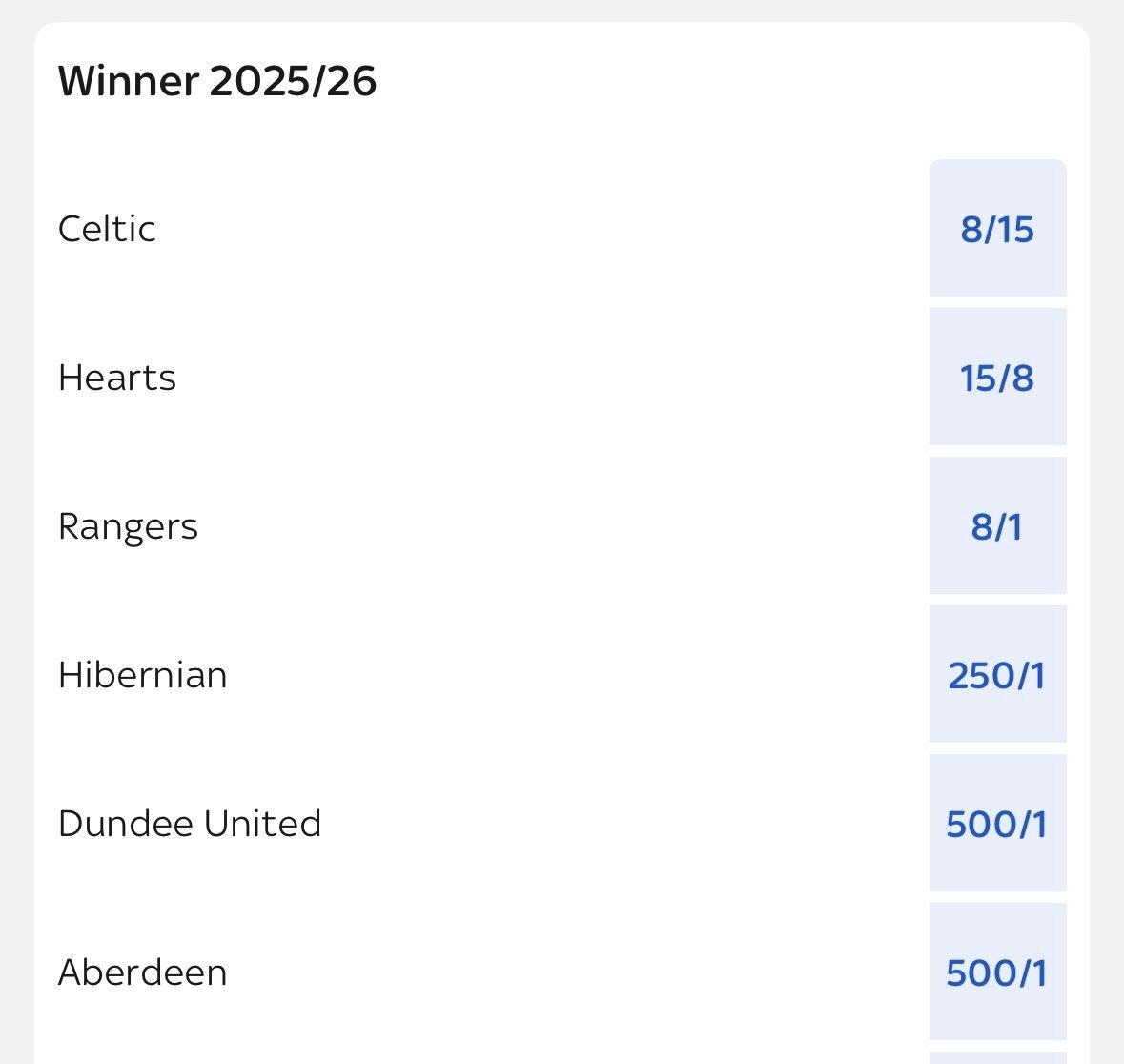 Think someone mixed up the Premiership and Cup odds.