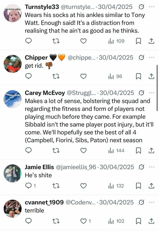 Can you read the previous messages before replying to them, so I don't have to begin every reply by repeating myself. The comment I replied to was We had a team full of proper men under McInnes, now we have a team full of spineless foreign shite. It wasn't me who brought up physical players or foreign players. And yes, it is backdoor xenophobia. I don't know why you're so upset about it since the comment wasn't even in reply to you. No, it's an opinion of yours, it's not a fact. With respect, that's just a jumble of words making little sense. You keep saying Scottish players, then UK and Irish players, to "players that know the league. I don't even know where you stand or what your point even is. It's very clear it's part of our trading model. We're trying to find the next Miovski. Simon Murray isn't going to be sold for £6m to anyone. There was more chance - on paper at least - of Sokler or Duk or Gueye being sold for big money in future.