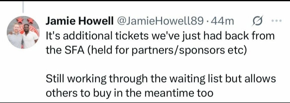 Is this everyone handing back their cup final tickets after last night? There are currently 1,139 tickets available. -