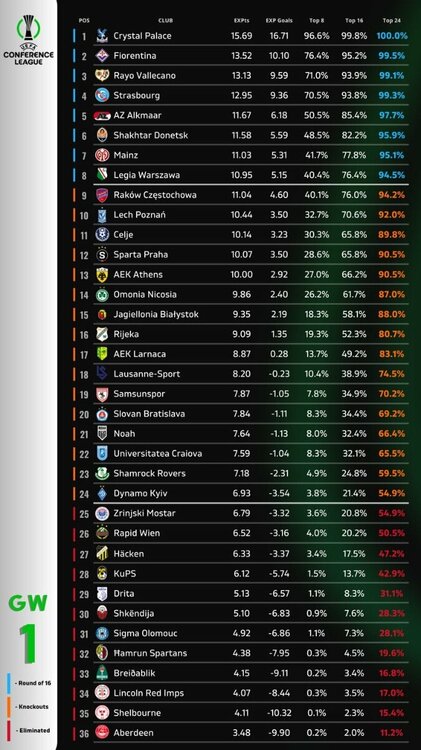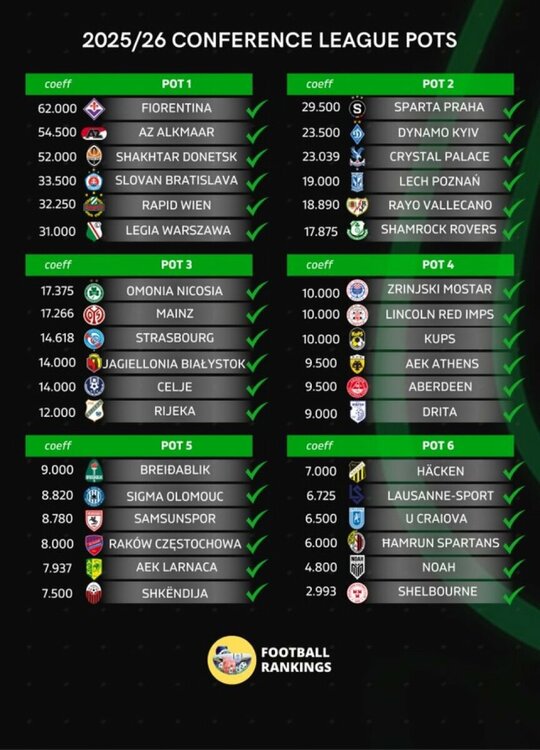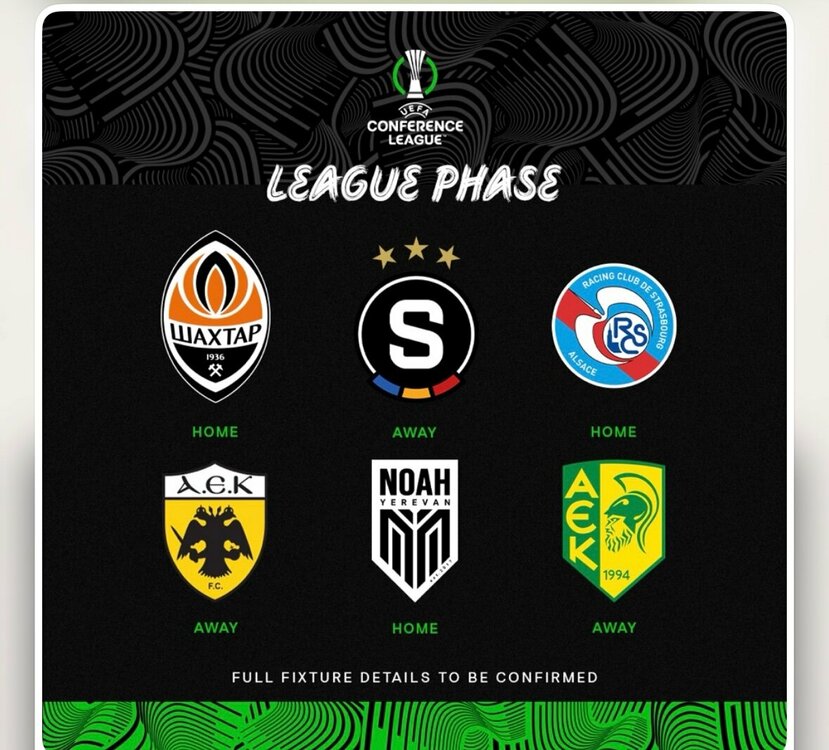 Forget the Europa. She never loved us anyway. Draw imorn. We play one team from each pot. Toughest draw: Fiorentina, Crystal Palace, Mainz, AEK Athens, Samsunspor, Hacken. Panda's draw: AZ Alkmaar, Shamrock Rovers, Bialystock, Lincoln Red Imps, Breidablik, Shelbourne (apparently the rules say we can play both Irish sides).