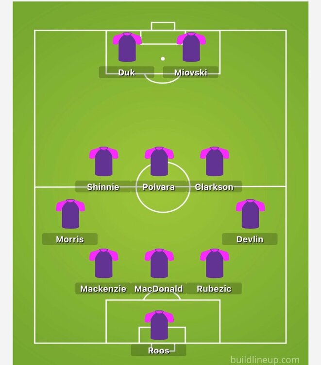 Defence will be interesting, as can't see Morris being dropped, Devlin likely plays too, but MacDonald surely comes back into the team. Is it a straight MacDonald for Rubezic swap or does Robson try and include both? In the absence of McGarry and Hayes, and Duncan not quite hitting the heights at LWB, I'd actually be inclined to play Morris on the left. He can't cross anyway so doesn't really matter what side he starts on. It would allow Devlin to start RWB, and MacDonald and Rubezic to both play. (that away strip is difficult to recreate) -