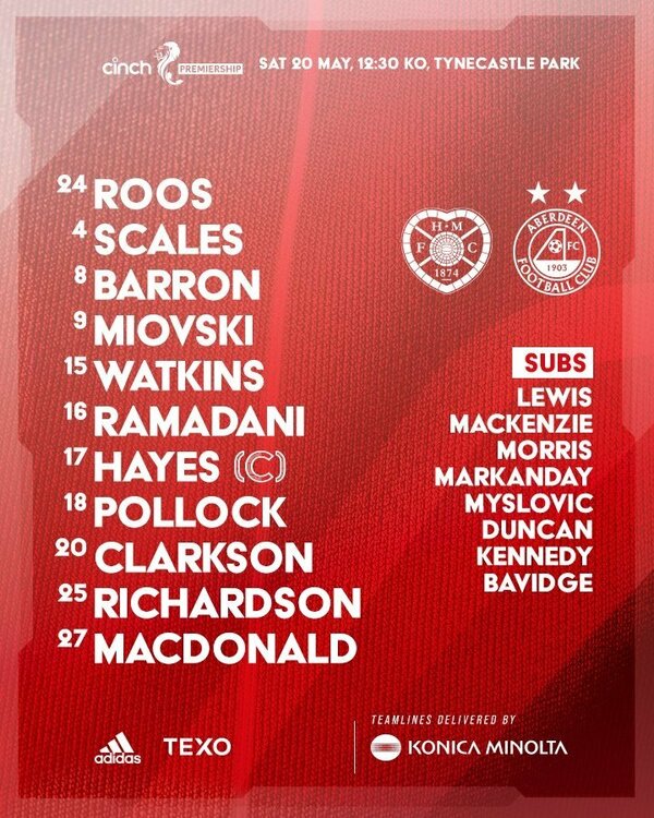 Appears McCrorie will be back. A late call on Duk to be made. I think in this day and age of five subs you probably just take a risk on someone not 100% fit. Quite confident to be honest. Think we'll win 2-0. Miovski and Duncan. See you all in Rome in October.