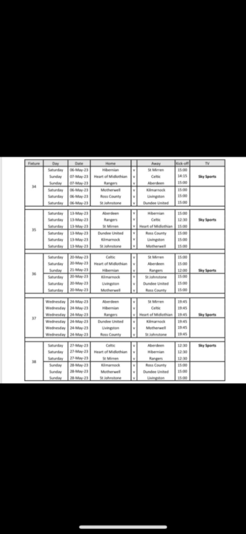 So... Rangers, Hearts & Celtic all away Hibs & St Mirren at home. I'd say those work out well for us. We expected three away anyway. The two most winnable ones are at home, and if we win both those then Hearts will need to win four games after the split - including v us. That's a big ask.
