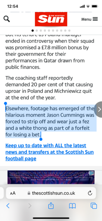 Michniewicz's son reckons he's already in talks with Aberdeen and it's "been going on for a few weeks". I'd suggest that's shite and more likely they have their eye on another job and are making it look like he's in demand. But hey, I've never met his son, maybe he never lies and Cormack is a fan. I did like how on a story about Aberdeen the Sun decided to add on this Jason Cummings titbit for no obvious reason.