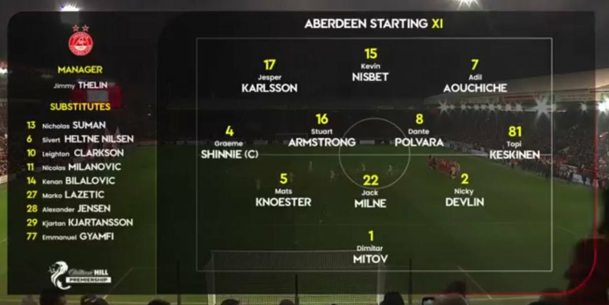 RicoS321 Posted 2 hours ago Report Posted 2 hours ago 10 minutes ago, Radiored said: Formation accordin' the the BBC .... Mitov, Devlin, Knoester, Milne, Shinnie, Polvara, Armstrong, Keskinen, Aouchiche, Karlsson, Nisbet, That isn't correct Quote