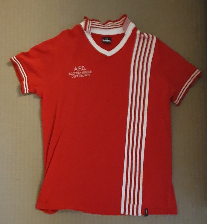 scotfree Posted November 18, 2020 Author Report Posted November 18, 2020 10 hours ago, Elgindon said: Aye,remember it well.Think he was also trying to gee us up a bit for the remainder of the game First final I can remember.Too young for the '70 cup final,would have loved to catch that one.Can name all the guys in the picture below,except the guy sitting on the edge at this end,blond hair? 01_1976LeagueCupWinners by david henderson, on Flickr A few years back the club had a replica of that shirt for sale. I sent off for one, but for some reason they sent me the 1970 cup winners shirt. That is the one with the long sleeves, which really nice looking, long sleeves are not the best for the tropics... I do wear it when it gets "cooler" here. I got in contact with the club about the mix up and they sent me the 1976 for free. I thought that was top notch of the club shop. 1 Quote